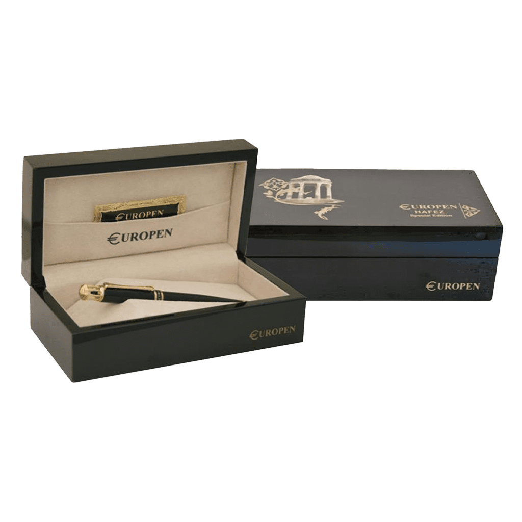 – قلم ها در یک جعبه بسیار نفیس که با تصویر مقبره حافظ مزین شده بسته بندی گردیده است.