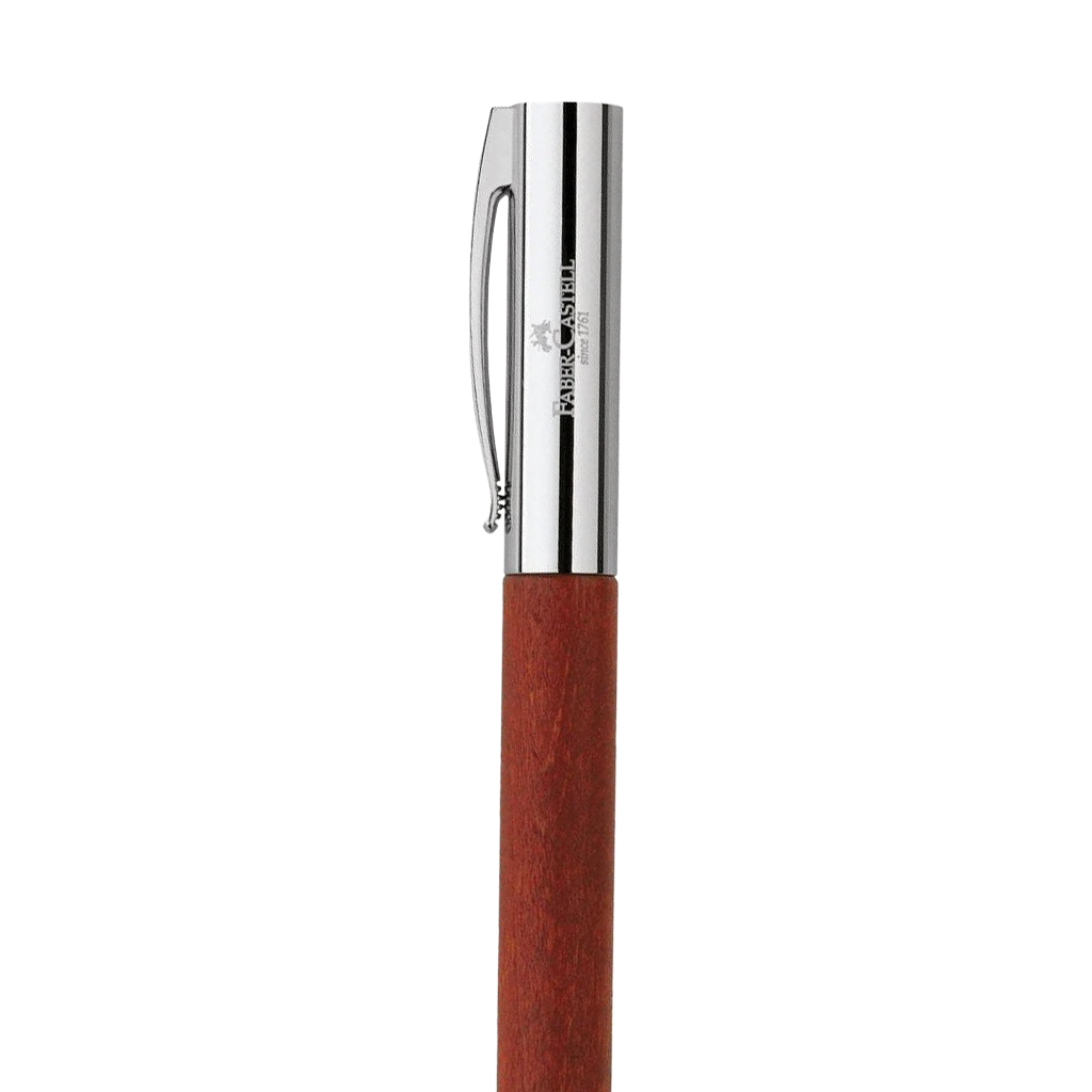 خودکار Faber castell Ambition چوب درخت گردو، یکی از خودکارهای بسیار خوش دست برند فابر کاستل است، که دلیل خوش دستی آن جنس فوق العاده چوب درخت گردو و طراحی اصولی بدنه است. در طراحی بدنه تمامی پارامترها برای بالانس بودن وزن و قرار گیری آسان در دست نویسنده رعایت شده است. جذابیت بدنه با چوب درخت گردو در کنار قطعات و گیره با روکش کروم صیقلی بسیار افزایش یافته است. رنگ بدنه همان رنگ طبیعی چوب درخت گردو قهوهای هست. این خودکار همراه با جعبه اختصاصی کادویی فابر کاستل به فروش میرسد. این قلم با توجه به خصوصیات ظاهری و کیفیتی بسیار برای هدیه دادن جذاب است.