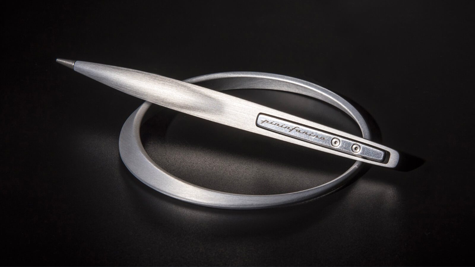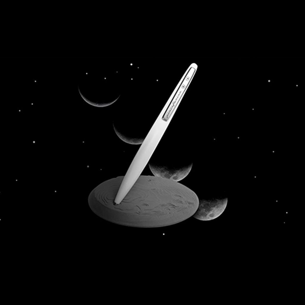 قلم ماندگار Pininfarina Forever Space، در هر شرایطی امکان نوشتن دارد. این قلم بر روی کاغذ اثری مشابه با مداد ایجاد میکند و امکان نوشتن تا چند صد سال را دارد. نوک این قلم از آلیاژ Ethergraf است. جنس بدنه قلم منیزیم هست و با استفاده از فیلم سرامیک سفید روکش کاری شده که تداعی کننده روکش سرامیکی سفینه آپولو است. نکته جالب این قلم، جنس پایه آن هست که از جنس Lightstone از کامپوزیتهایی با تشابه زیاد به جنس سنگهای سطح ماه است. طراحی سطح روی پایه از محوطه فرود آپولو الهام گرفته شده است.