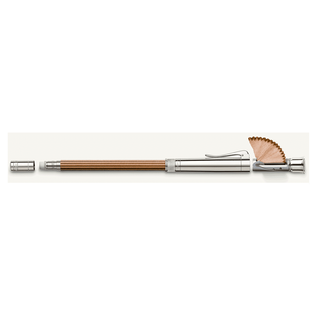 مداد Graf Von Faber Castell Perfect Pencil با یک طراحی بسیار خاص و منحصر به فرد خود گراف، میتوان گفت یکی از بهترین مداد های کاربردی است. این مداد ساخته شده با روکس پلاتین است. این مداد به همراه خود یک تراش و پاک کن نیز دارد که در قسمت بالایی تراش و در قسمت پایین، پاک کن گنجانده شده است.