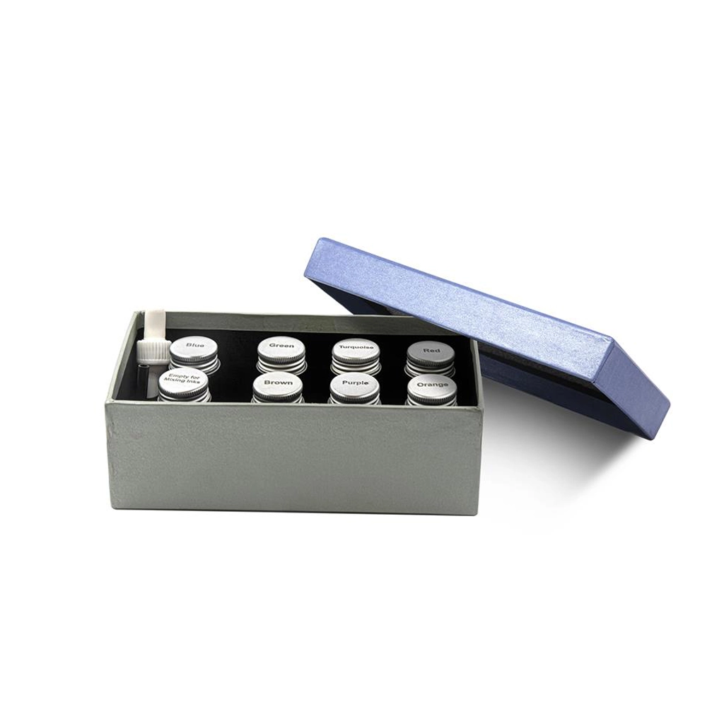 - کیت ترکیب جوهر (شامل هفت رنگ جوهر در رنگ های آبی، قرمز، نارنجی، بنفش، سبز، فیروزه ای، قهوه ای)