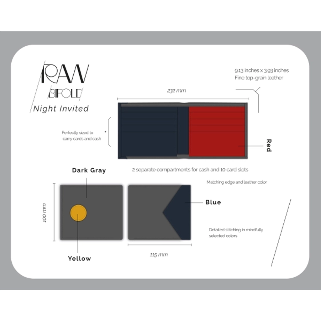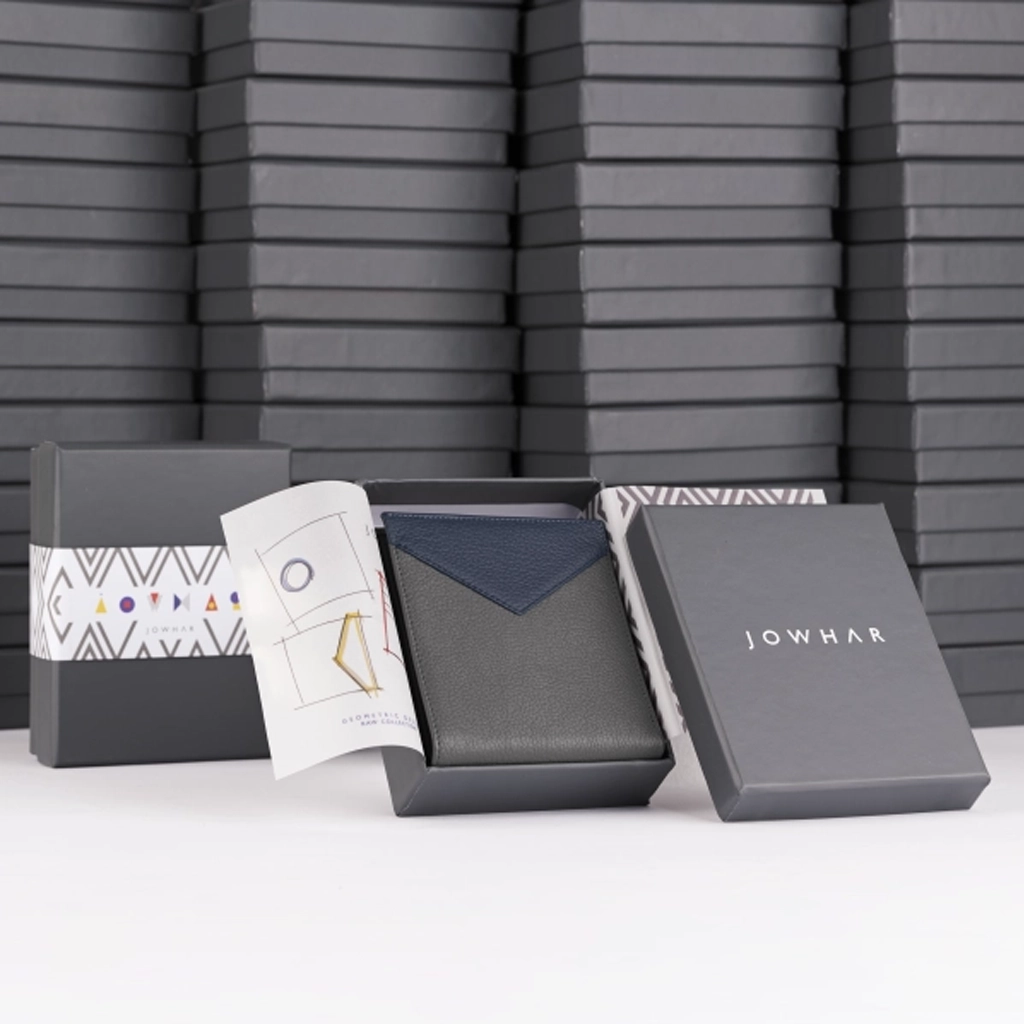 کیف پول چرمی Jowhar RAW Night Invited خاکستری و آبی