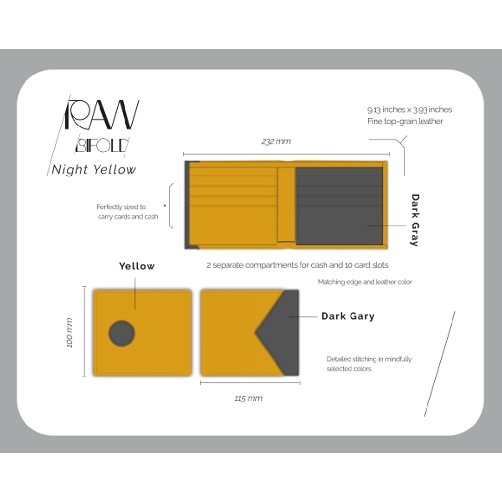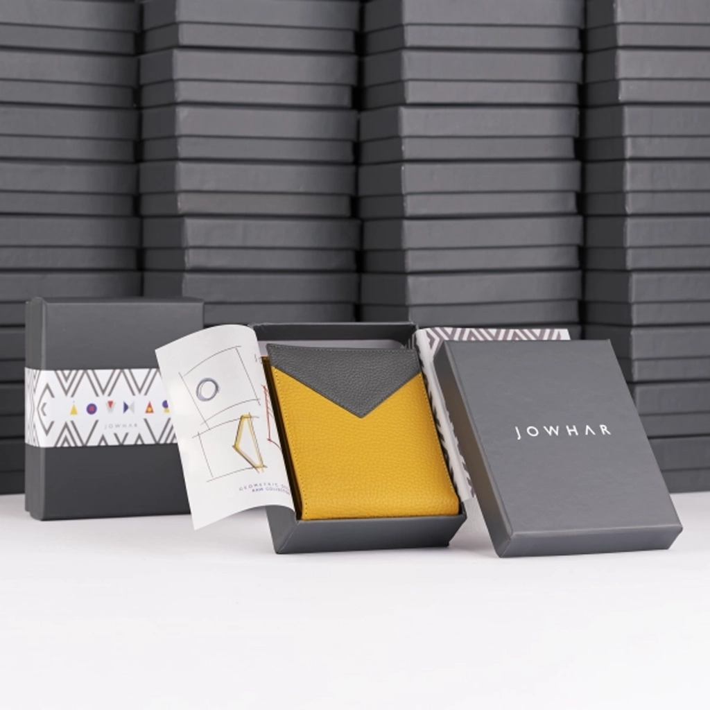 کیف پول چرمی Jowhar RAW Night Yellow زرد و خاکستری