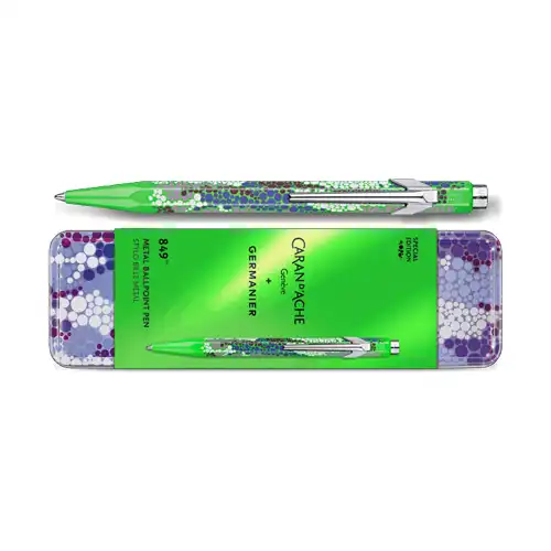 خودکار کرن داش مدل 849 Germanier نسخهای ویژه از سری کلاسیک 849 برند سوئیسی است که با طراحی منحصر به فرد طراح Kévin Germanier تولید شده است. بدنه ششضلعی از آلومینیوم مقاوم و سبک و رنگهای نئونی جذاب (سبز فلوروسنت، صورتی فلوروسنت و…) این قلم را به گزینهای خاص و کلکسیونی بدل کرده است. این خودکار لوکس برای کسانی طراحی شده که به دنبال ترکیب کیفیت سوئیسی، ظاهر مدرن و نوشتاری روان هستند و میخواهند ابزاری لوکس و منحصر به فرد داشته باشند.