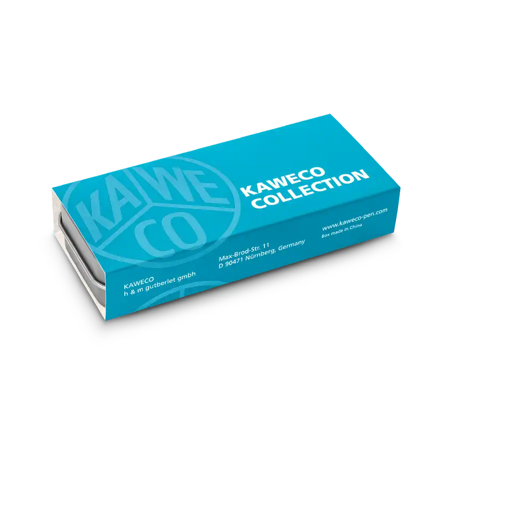 این قلم همراه با جعبه فلزی نوستالژی کوتاه و روکش آبی عرضه میشود که ضمن محافظت، جلوهای زیبا و شکیل به هدیه یا نگهداری قلم میبخشد.