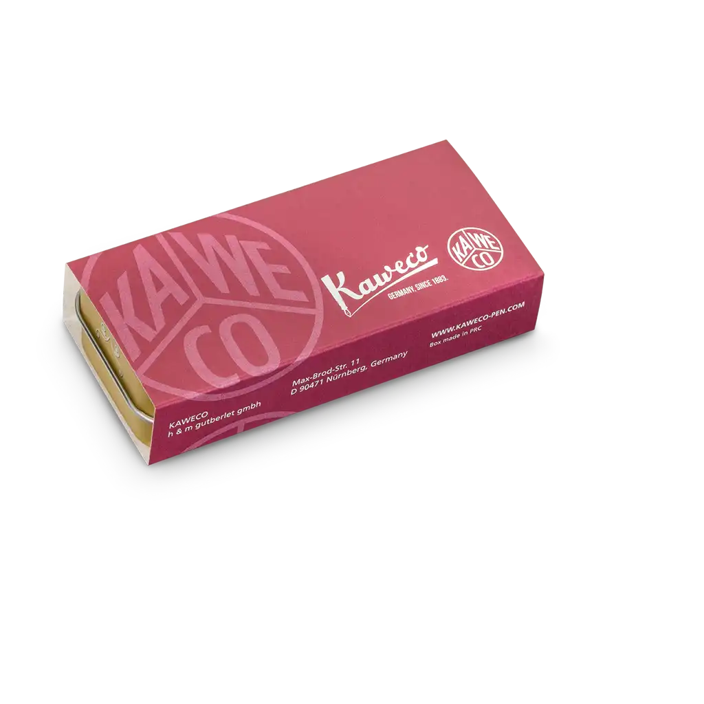 خودنویس همراه با یک جعبه فلزی نوستالژی کوتاه روکش یاقوتی ارائه میشود که علاوه بر حفاظت از قلم، حس لوکس بودن و خاص بودن را به کاربر منتقل میکند. این جعبه، ایدهآل برای هدیه دادن به کسانی است که به نوشتافزارهای باکیفیت علاقهمند هستند.
